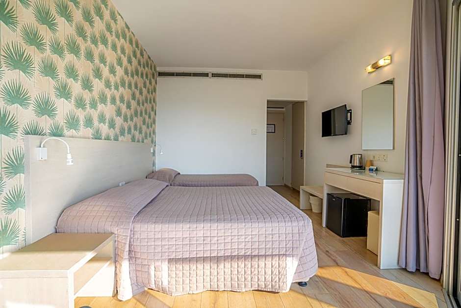 Opening to a balcony with side views of the Mediterranean Sea, this room offers a satellite, flat-screen TV.